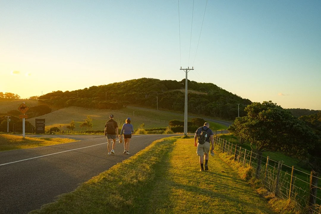 My family and I spent a stunning day on Waiheke Island, the second largest island in the Hauraki Gulf of the north island of New Zealand. We boarded an early morning ferry across the gulf, taking us roughly forty minutes to the island. We transferred from boat to bike to take us around the island for the day. We began our route circumnavigating the island (thank goodness we had e-bikes, as the trek was extremely hilly), stopping along a coast of beautiful beaches and taking a dip in the crystal clear and calm waters of Palm Beach. We stopped for a lunch of fresh and hot fish n’ chips at Onetangi Beach, and then continued our route to one of the many wineries on the island. Surrounded by a lush green tropical landscape and the constant white noise of cicadas, we enjoyed sipping on local wines and aperol spritzes. Slightly more tipsy than we should have been riding bikes along an open highway road, we managed to finish our bike route in one piece. We then decided to hike a trail up a long and winding hill to one of the wineries. We found a nice sunset spot in the grape fields to have a picnic and watch the sunset fall over Auckland in the distance.
